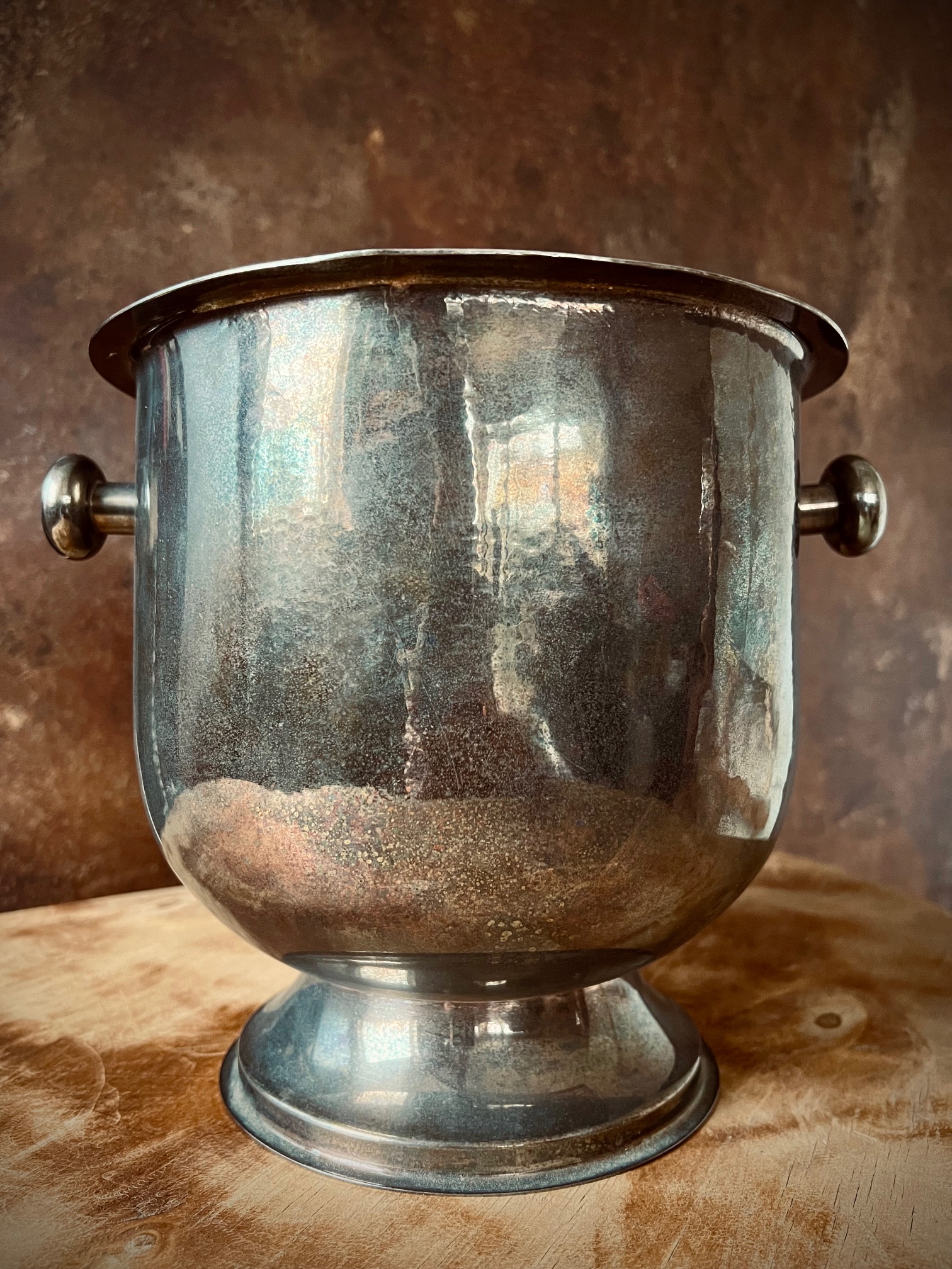 Eriline ja vana champagne cooler, arvatavasti Itaalia päritolu. Selle kaunilt kulunud välimus, mis on kaunistatud peene patinaga, annab sellele ajatu ja vintage ilme ning silver-plated pind lisab sellele hõbedase sära. Sobib suurepäraselt stiilseks lisandiks igasse ruumi või erilistele sündmustele.