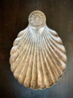 Kaunilt kulunud hõbedast tooni pooliku merekarbi kujuline alus, millel on nii praktiline kui ka dekoratiivne omadus. Sobib suurepäraselt väikeste esemete hoiustamiseks, näiteks ehete või siis lihtsalt kaunistuseks interjööri.