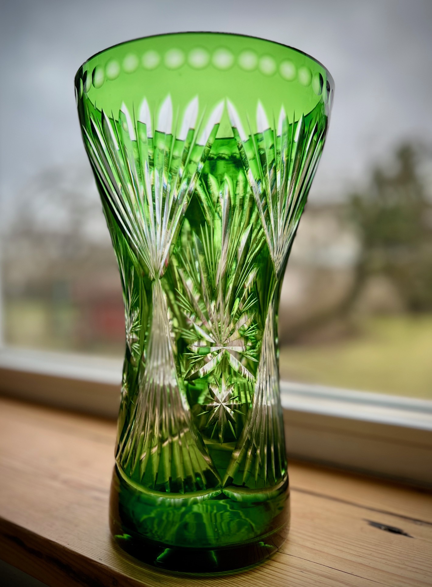 Kaunis ja ajatu smaragdroheline klaasist vaas, mille säravad detailid püüavad valgust ning loovad kauni sädeluse. Klassikaline, kuid pilkupüüdev aksessuaar, mis toob igasse ruumi väärikust ja ajatut ilu.